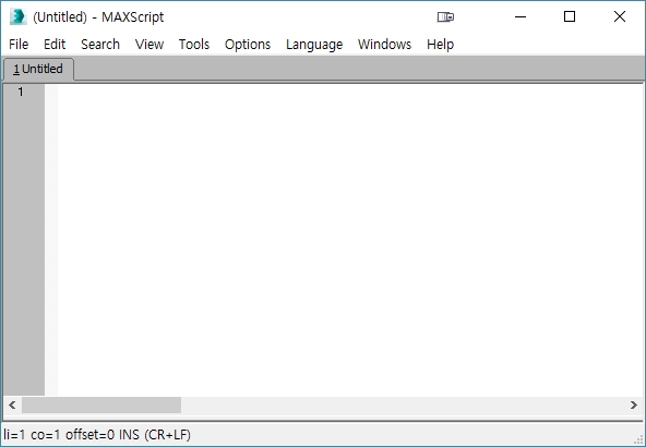그러면 다음의 메모장과 같은 'MaxScript Editor'가 생성됩니다.(단축키인 Ctrl+N, Ctrl+O를 기억하면 편합니다.)