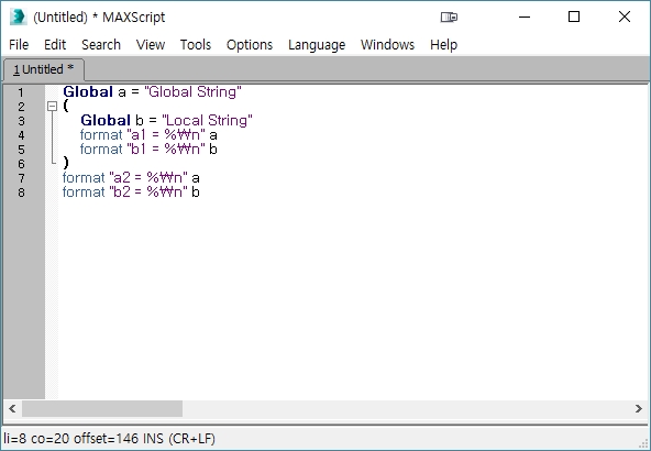 맥스 스크립트는 지역의 범위를 괄호로 표시하기 때문입니다.