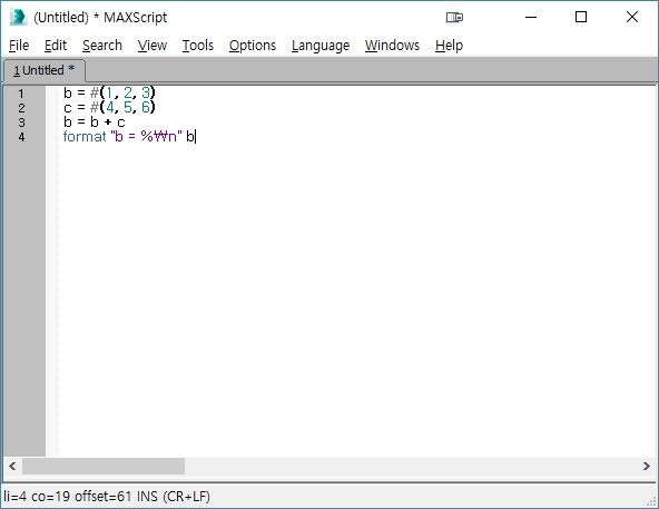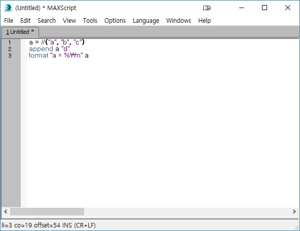 'Script editor'에서 다음과 같이 적어 봅시다.
