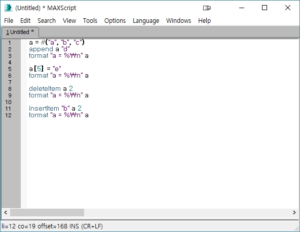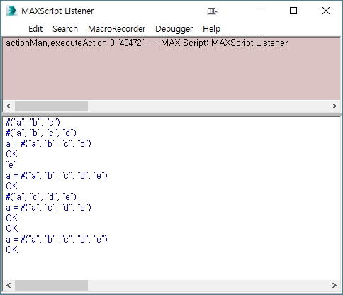 배열의 값을 조작하는 함수들인데 맥스 스크립트에서 배열을 자주 쓰기 때문에 기억해 두시면 편합니다.