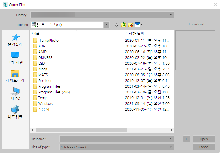 맥스의 파일 열기에 대해선 이전시간에 이야기했습니다.