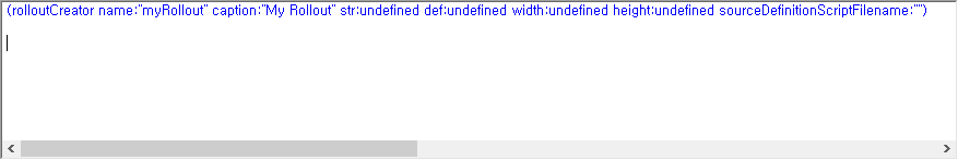 반환된 정의는 createDialog 또는 addRollout 함수에 전달할 수 있습니다.(약간 뜬 구름 잡는 소리 같기는 한데 createDialog 또는 addRollout함수에서 이용된다는 의미입니다.)