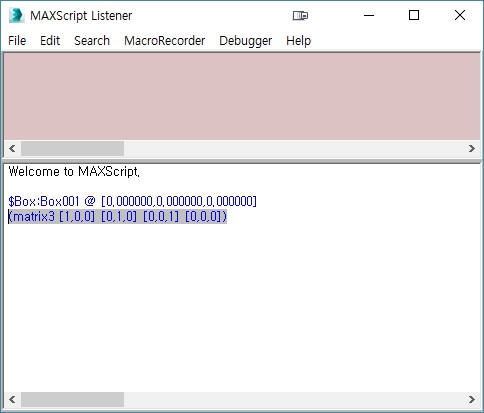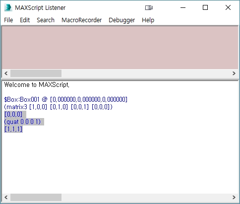 맥스 스크립트 리스너에 (matrix3 [1(matrix3 [1,0,0] [0,1,0] [0,0,1] [0,0,0])라는 결과 값이 나왔네요.