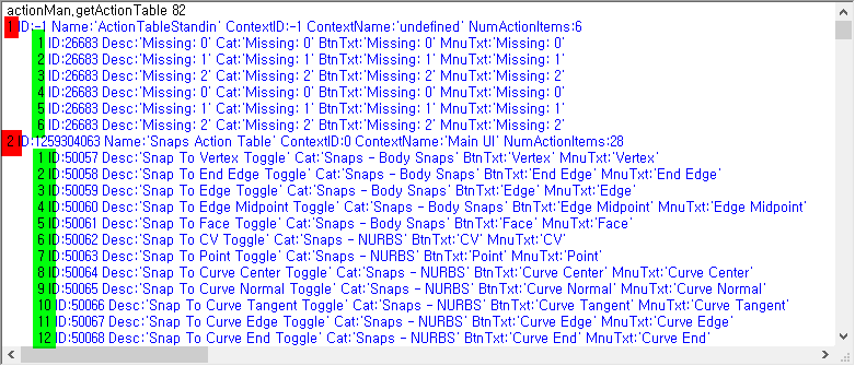 위 명령어로 반환된 결괏값이 차후에 사용되는 '<ActionTable>'이 됩니다.