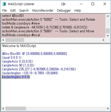 (eulerAngles 0 0 0)라고 잘 적용이 됐습니다.