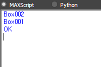 박스 2개를 만들고 하나만 선택하고 '$'라고 MAXScript Listener에 입력하여 결과를 보겠습니다.