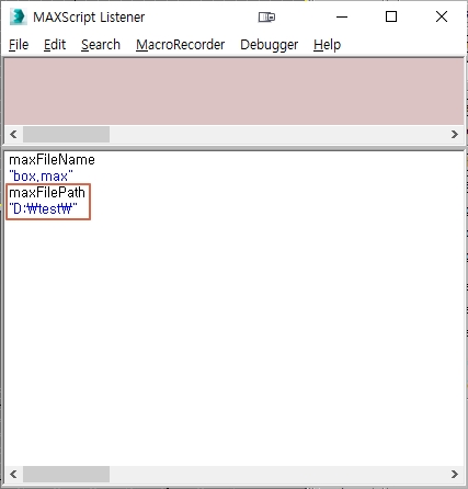 다음과 같이 MAXScript Listener에 입력하고 엔터를 하여 확인해 봅시다.