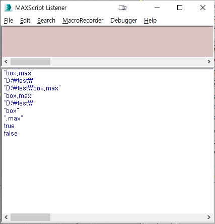 설명을 조금 하자면 MAXScript Listener의 마지막 두 줄의 true와 false에서