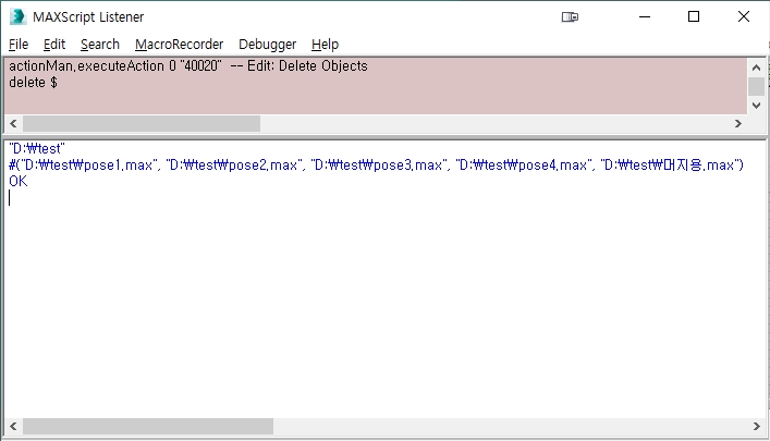D드라이브 test폴덜의 맥스 파일의 Path와 Name이 합쳐져 배열 형식으로 저장되어 있습니다.