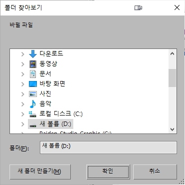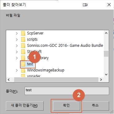 저는 미리 준비해둔 파일이 있는 D드라이브의 test폴더를 선택합니다.