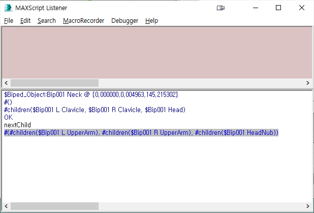 목의 자식인 $Bip001 L Clavicle, $Bip001 R Clavicle, $Bip001 Head 3개의 노드가 나옵니다.