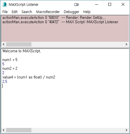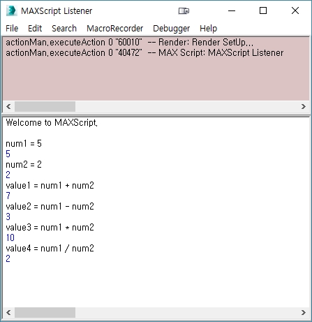 (맥스 스크립트에서 곱하기는 '×'가 아니라 '*'로 표시되고 나누기는 '÷' 대신 '/'를 사용합니다.)