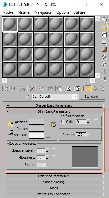 Blinn Basic Parameters의 나머지 부분은 다음 시간에 계속하겠습니다.