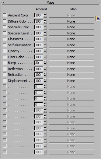 이전의 Material Editor(3)을 읽어 보시면 맵 종류로 사용되는 값들의 다른 것들을 확인하실 수 있습니다.